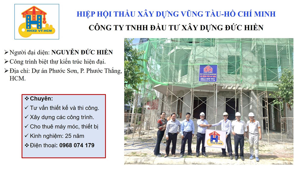 Ban điều hành Hiệp hội thầu xây dựng Vũng Tàu-Hồ Chí Minh thăm và trao Logo biểu tượng của HHXD VT-HCM đến Nhà thầu Hiệp hội: Công ty TNHH xây dựng ĐỨC HIỀN