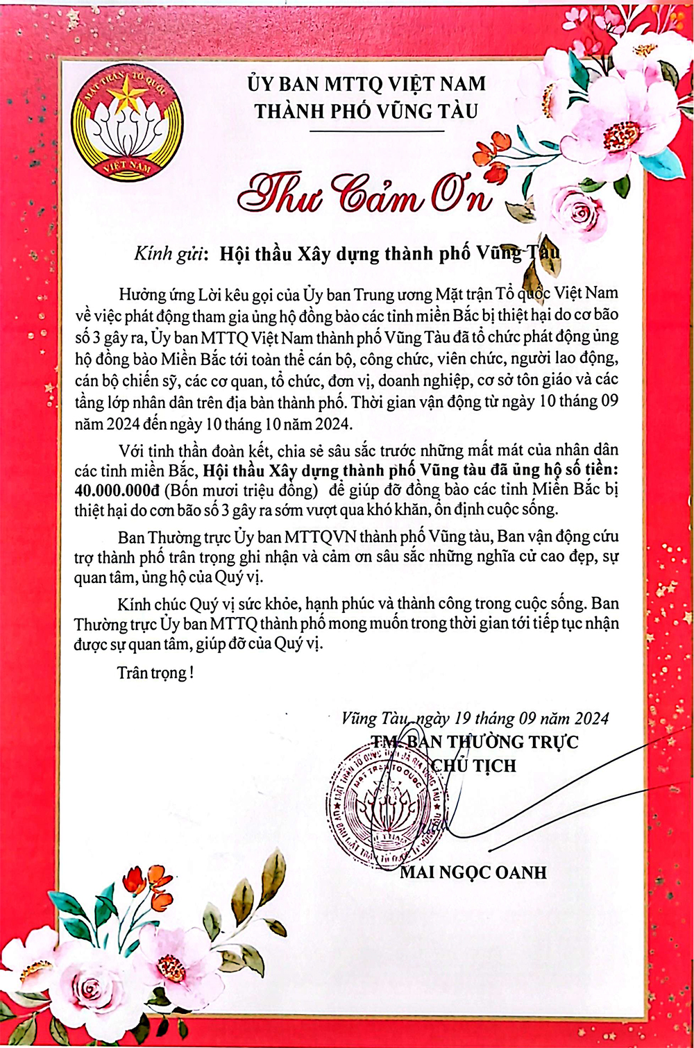 THƯ CẢM ƠN