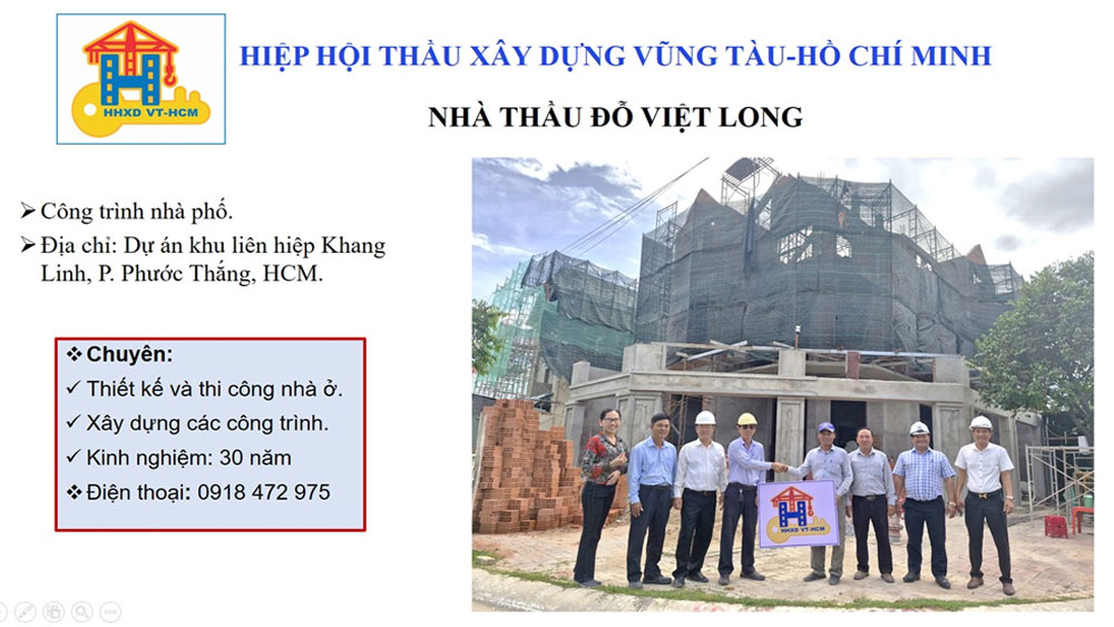 Ban điều hành Hiệp hội thầu xây dựng Vũng Tàu-Hồ Chí Minh thăm và trao Logo biểu tượng của HHXD VT-HCM đến Nhà thầu ĐỖ VIỆT LONG thành viên Hiệp hội