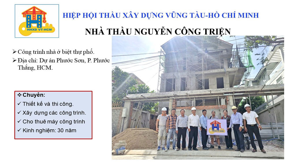 Ban điều hành Hiệp hội thầu xây dựng Vũng Tàu-Hồ Chí Minh thăm và trao Logo biểu tượng của HHXD VT-HCM đến Nhà thầu NGUYỄN CÔNG TRIỆN thành viên Hiệp hội
