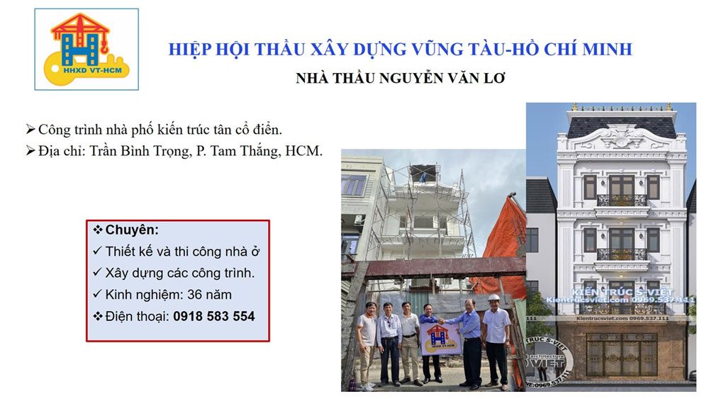 Ban điều hành Hiệp hội thầu xây dựng Vũng Tàu-Hồ Chí Minh thăm và trao Logo biểu tượng của HHXD VT-HCM đến Nhà thầu NGUYỄN VĂN LƠ thành viên Hiệp hội